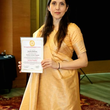 Concluí a Certificação do Parāśara Jyotiṣa Course (PJC) após cinco anos académicos de estudo com o meu Jyotiṣa Guru Pt. Sanjay Rath, sob a mentoria de Pandita Branka Larsen e Pandita Željko Krgović, tornando-me uma das primeiras — senão a primeira — portuguesas a completar este prestigiado programa. Atualmente, também estudo o Mantra Śāstra Program (MSP) sob a mentoria de Pandita Kartik Srinivasan.